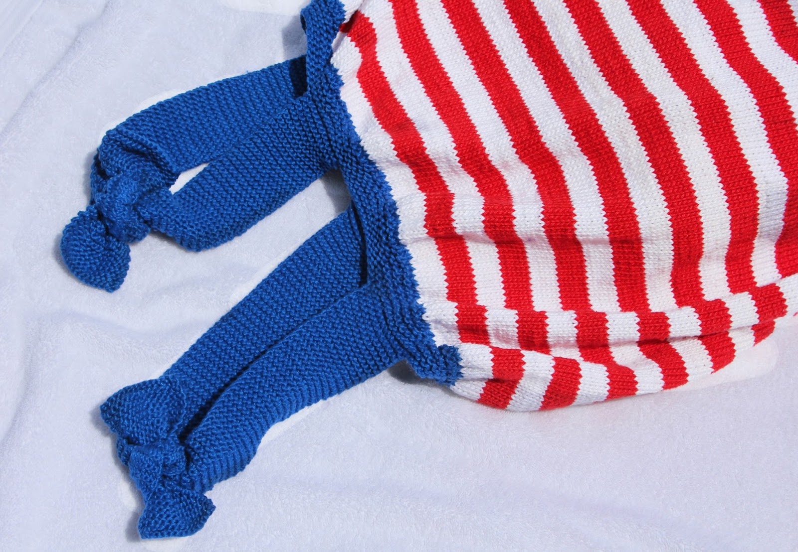 Continue this pattern of 6 rounds of Color B and 6 rounds of Color C in stockinette stitches until there are 20 stripes (10 of Color B and 10 of Color C).