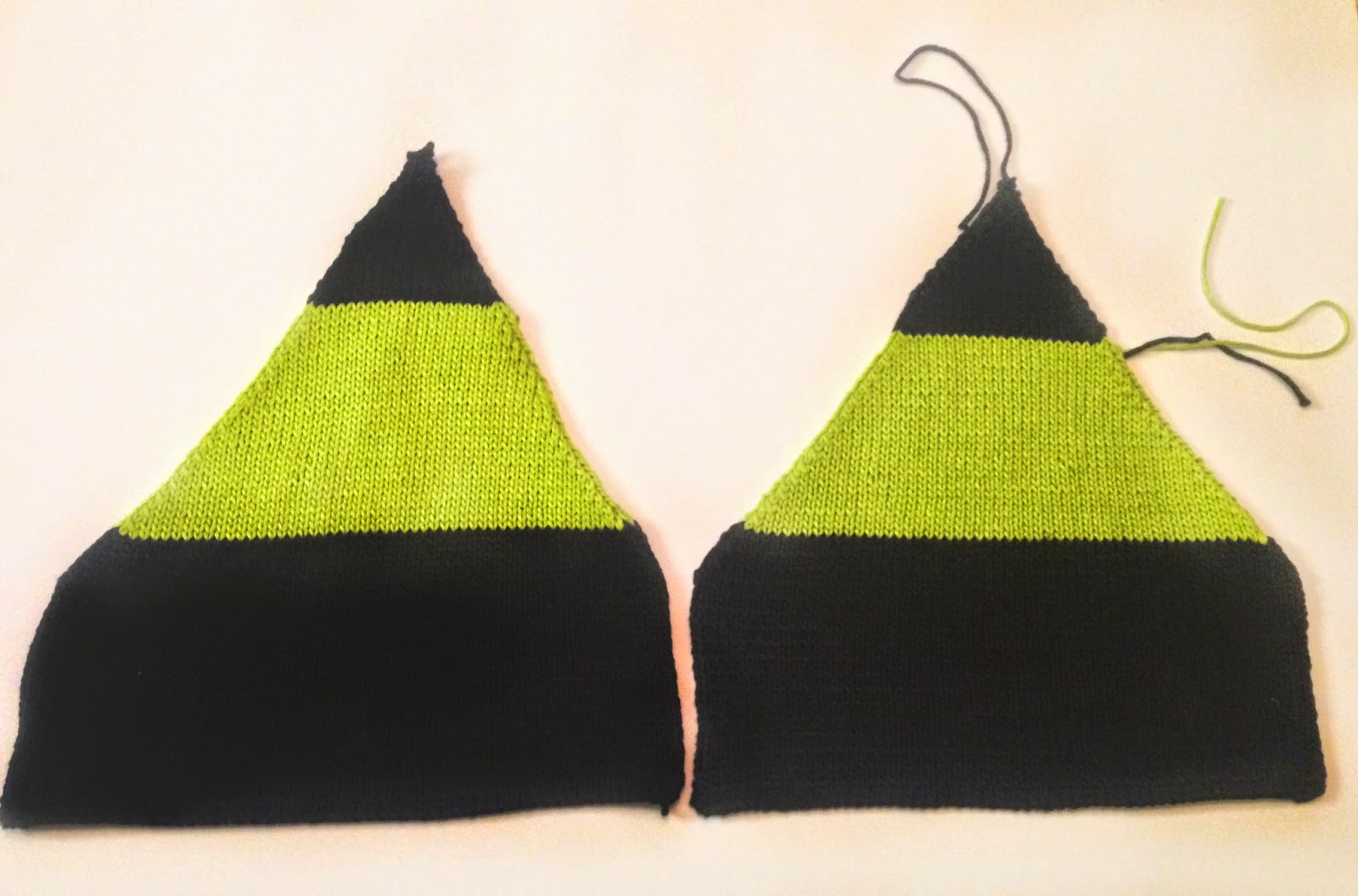 Row 39: Change to Key Lime and K1, K2tog Knit across row until last 3 sts, SSK, K1.